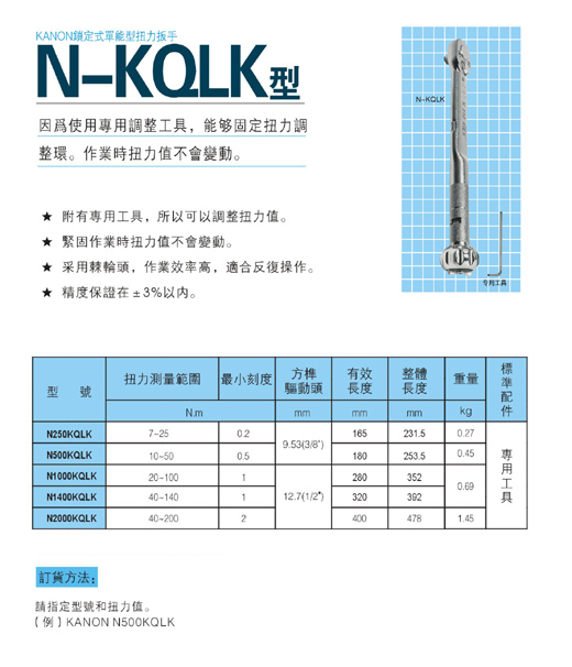 日本中村KANON - 扭力扳手 - 单能型扭力扳手 - 锁定式单能扭力扳手